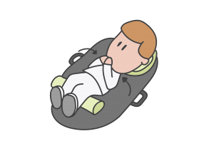 Na túto aktivitu použite bedrový polohovací popruh. Ním podporíte stabilitu bedier. Podporujte ho v tom, aby sa dieťa naťahovalo za predmetom (hračkou) cez telo ľavou rukou na pravej strane a pravou rukou na ľavej strane. Položte si ruku za jeho plece, ak bude potrebovať Vašu pomoc.