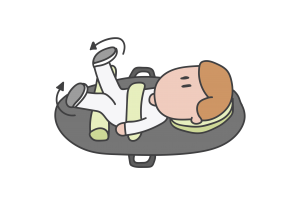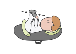 Pridržte nôžky dieťaťa a pomáhajte mu kopkať alebo „bicyklovať“. Toto mu pomáha napísať bruško, nohy a chodidlá. Recipročný (opačný) pohyb je ten, ktorý je potrebný na neskoršie prenášanie váhy a/alebo pohybovanie sa.