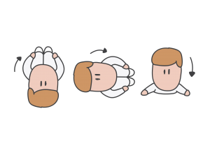 V prípade, ak chcete podporiť prevaľovanie sa z ľahu na chrbte do ľahu na brušku, položte dieťatko na chrbát. Zložte ruky a chodidlá dohromady do stredu. Podporte dieťatko v tom, aby sa prevaľovalo z jedného boka na druhý.