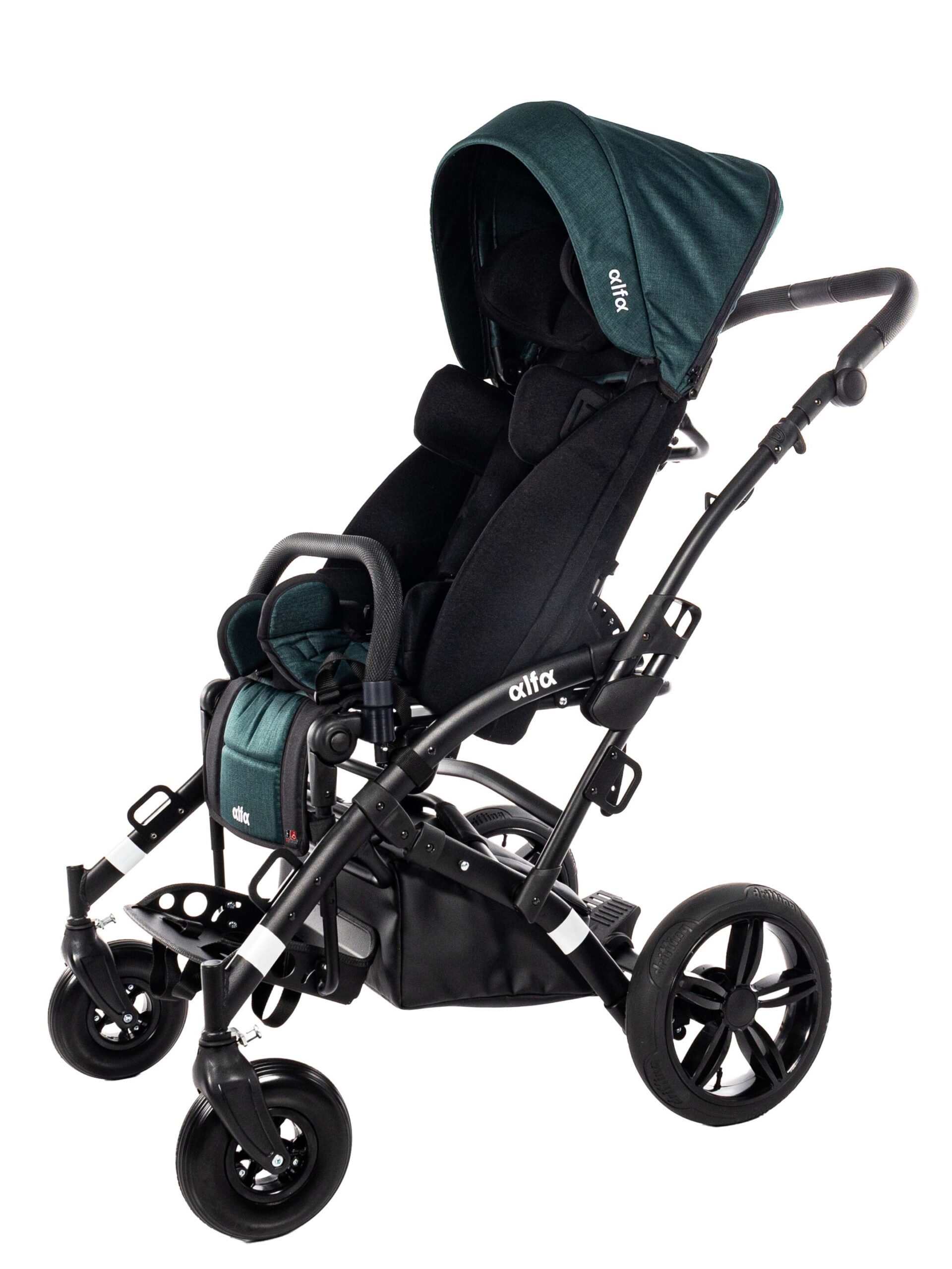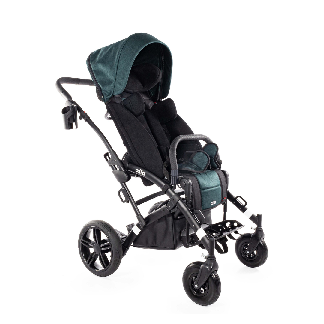 Špeciálny kočík ALFA je navrhnutý pre deti s výškou 100 – 150 cm a maximálnou hmotnosťou 55 kg.