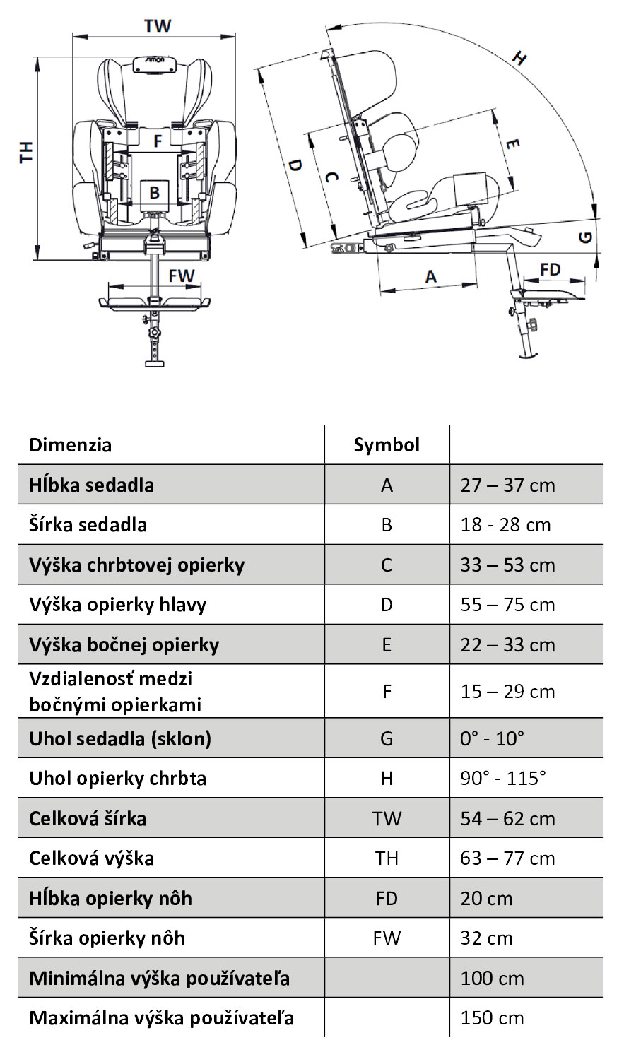 Polohovateľná Autosedačka SIMON bola navrhnutá pre potreby detí so špeciálnymi potrebami. Vhodná pre výšku postavy až do 150 cm. Reproduktor v hlavovej opierke, plynulá zmena polohy do polo ľahu, abdukčný klin a mnoho ďalších užitočných doplnkov v základnej výbave.