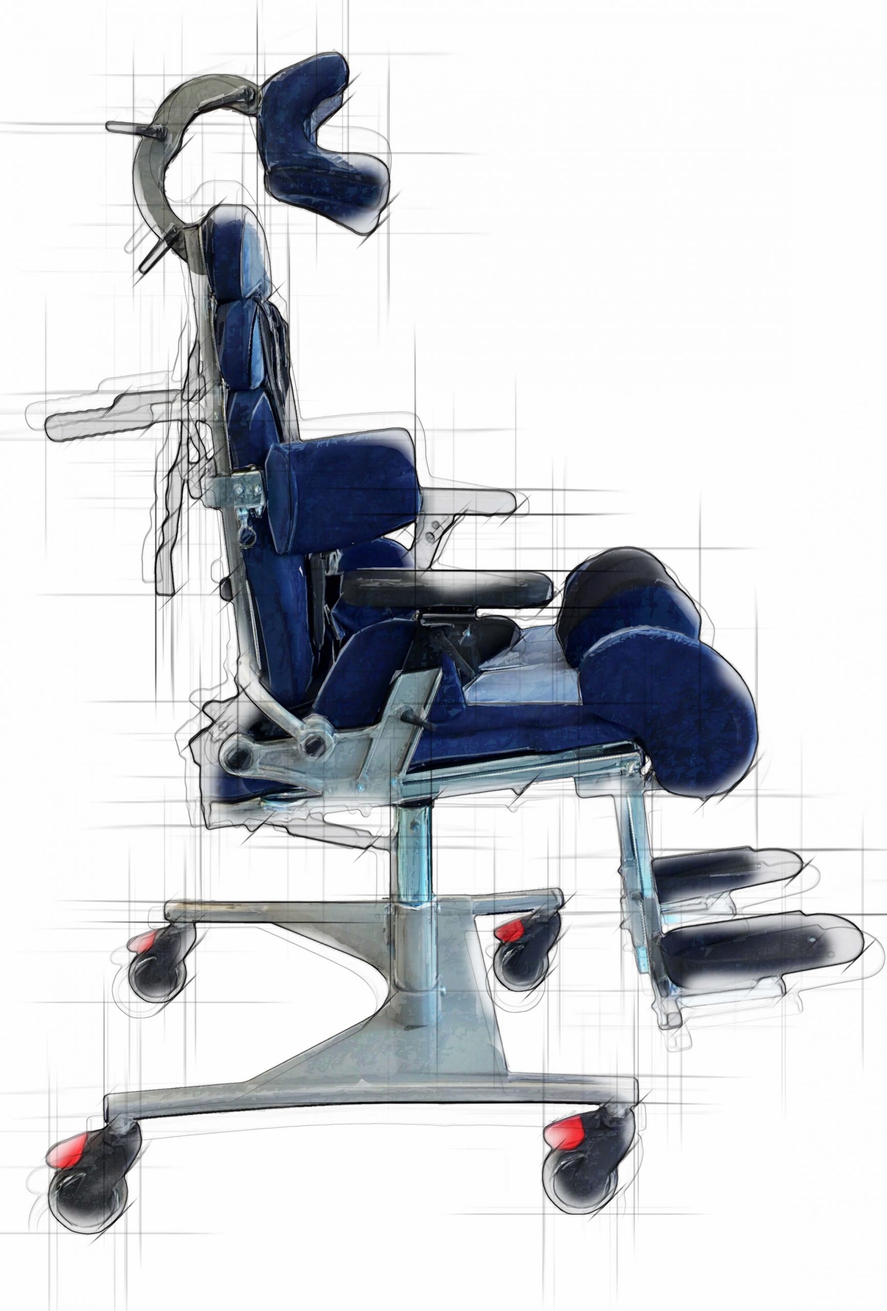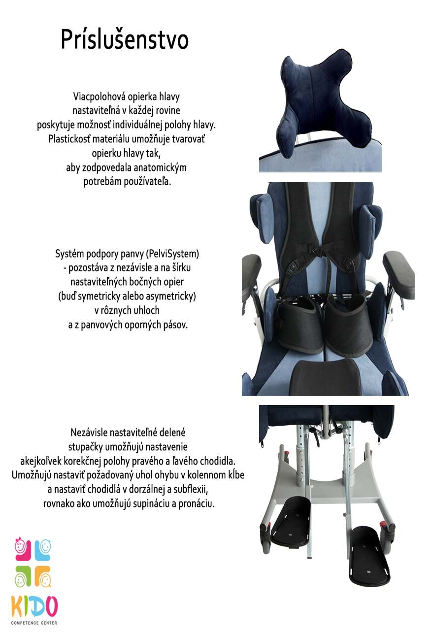 - Schopnosť prispôsobiť anatomický tvar používateľa Systém podpory a únosu nôh (AbductSystem) – kombinácia podpory kolena a systémov umožňujúcich nastavenie uhla únosu