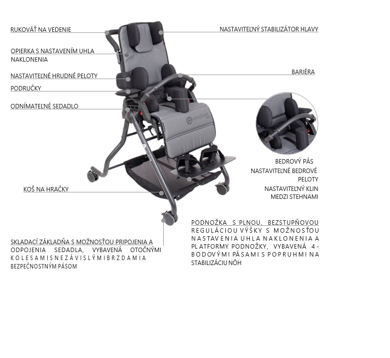 Reha Shift Pro™ , nie je len rehabilitačné kreslo, ale komplexné riešenie, ktoré umožňuje dieťaťu plnohodnotnejšie sa zapájať do každodenných aktivít, pričom zároveň poskytuje komfort a mobilitu.