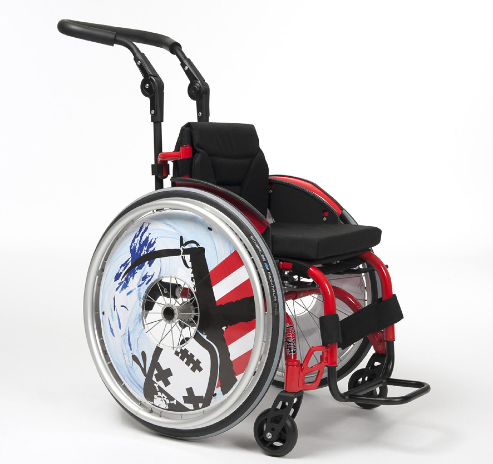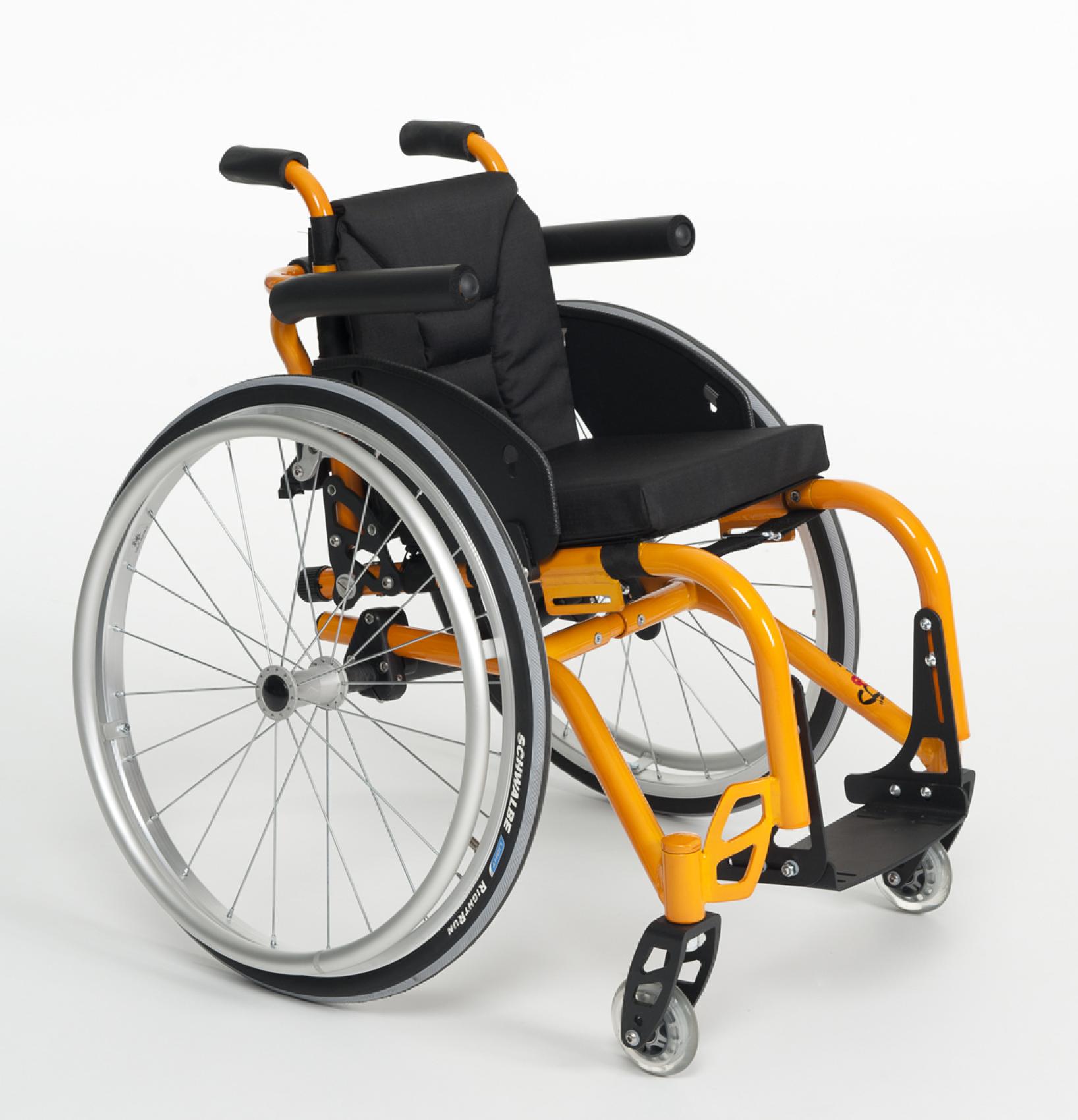 Aktívny invalidný vozík pre deti. Vďaka množstvu nastavení rastie s dieťaťom. Rám je vyrobený tak, aby bolo možné nastaviť šírku sedadla.