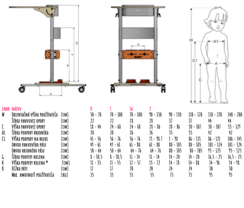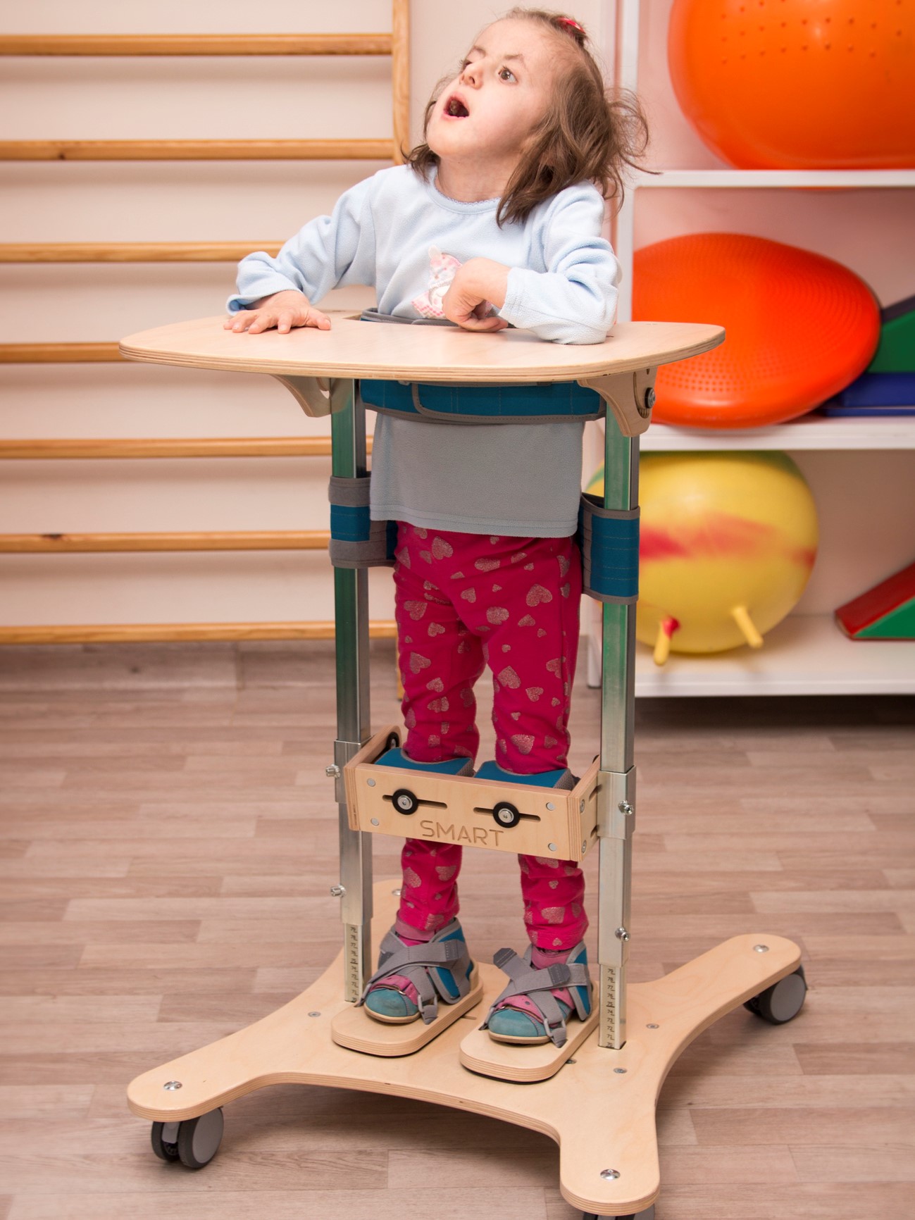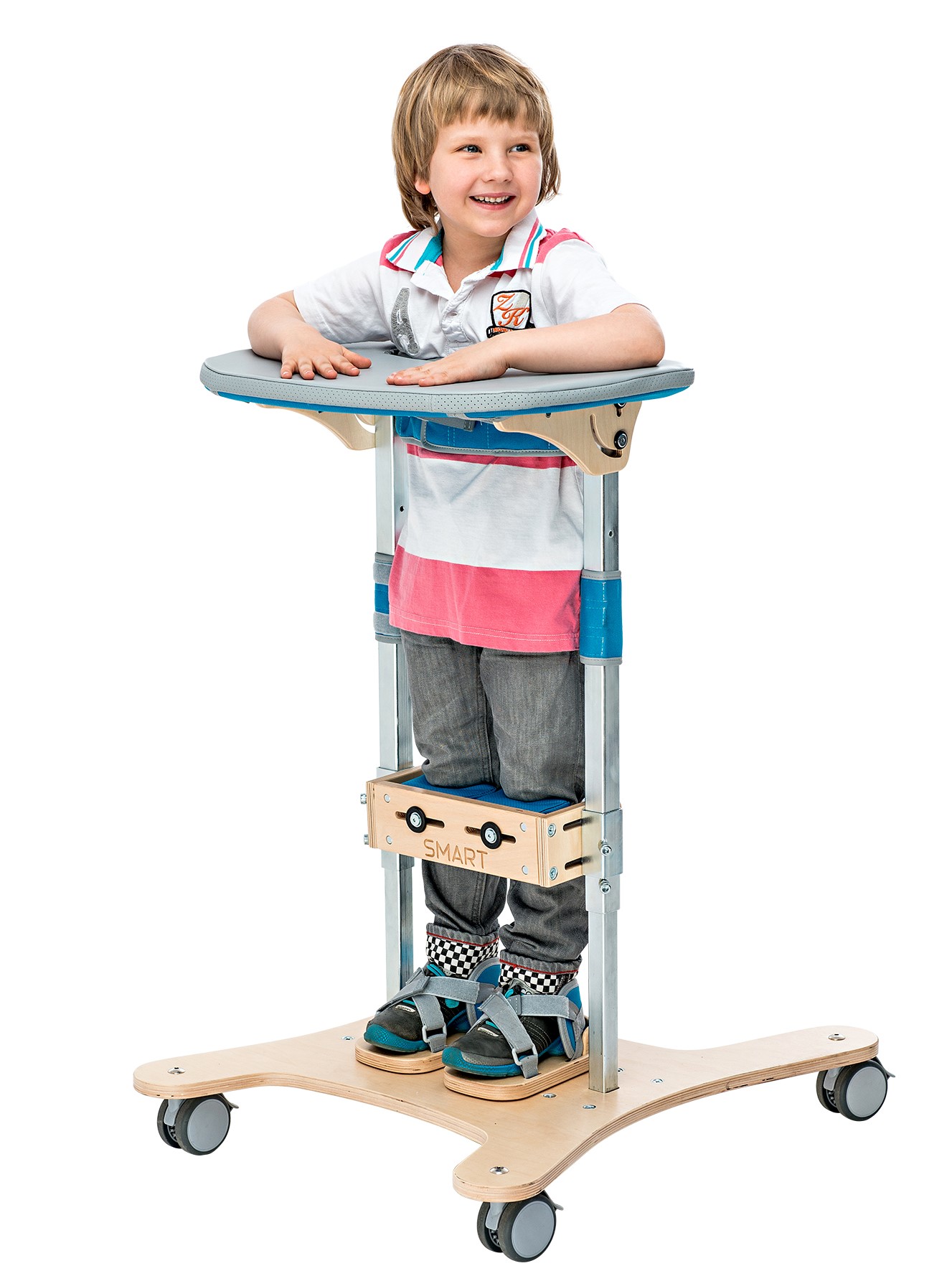 Vertikalizačné zariadenie SMART je pomôcka určená na stabilizáciu v stoji. Vertikalizačný stojan fixuje dolné končatiny, panvu a trup vo fyziologickej polohe, umožňuje užívateľovi terapiu v stoji zaťažením vlastnou váhou tela. Pomôcka sa vyrába vo viacerých veľkostiach, je vhodná pre deti ale aj dospelých.