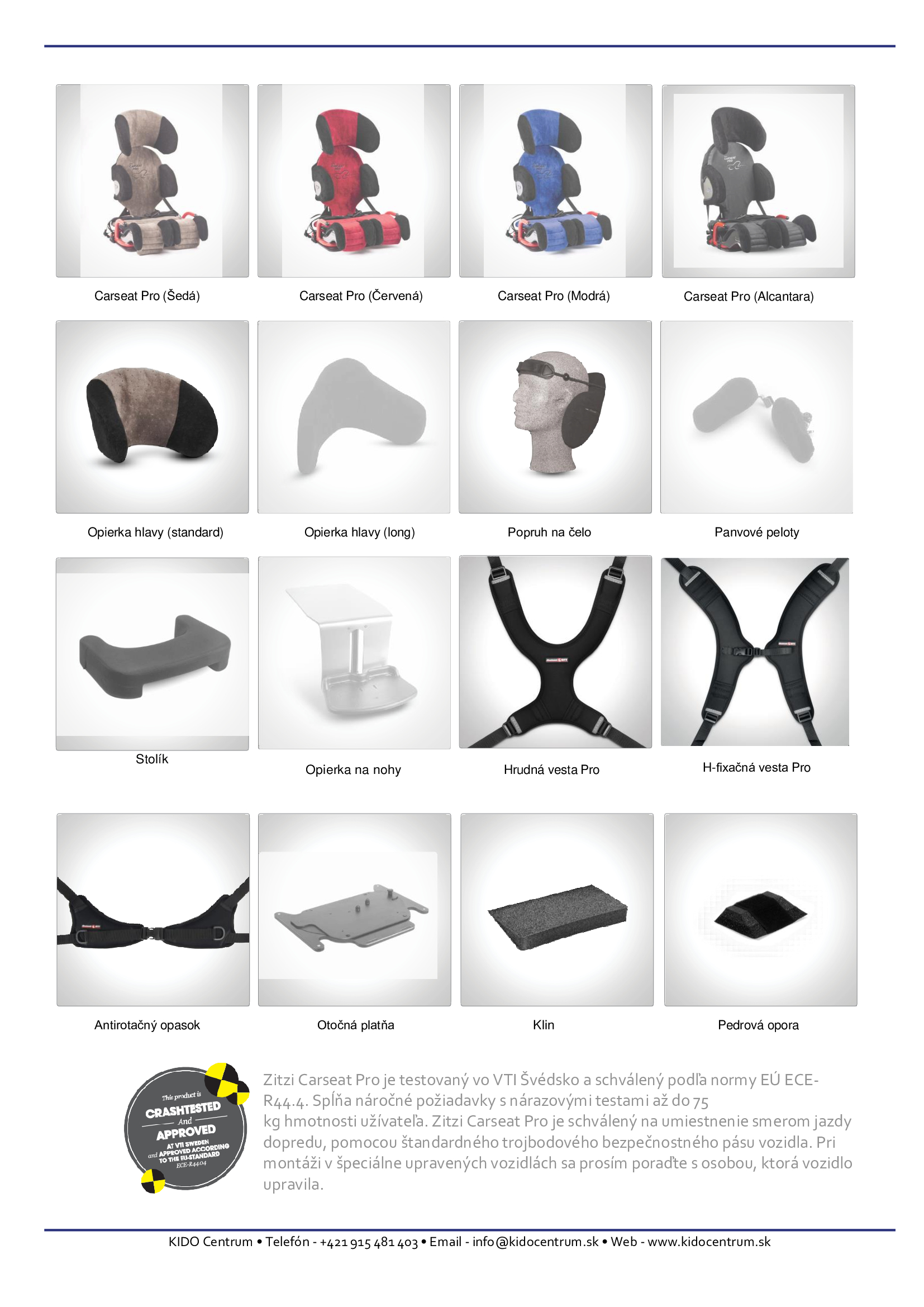 Zitzi Carseat Pro je nárazovo testovaný a schválený podľa normy EÚ ECE-R44.4 a spĺňa stanovené požiadavky v nárazovom teste do 36 kg hmotnosti užívateľa.